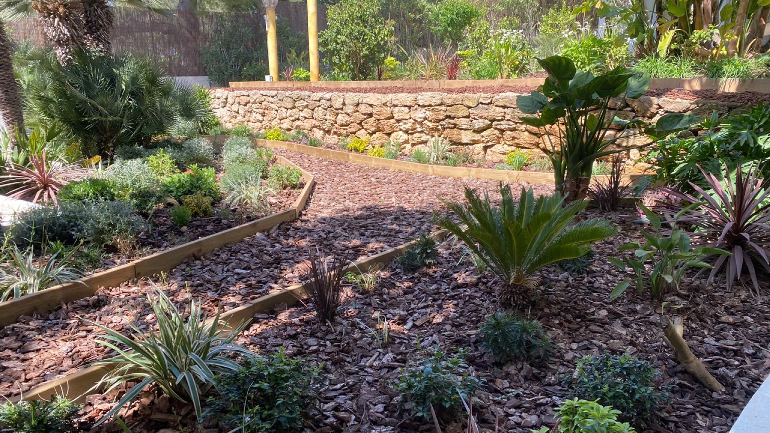 En este proyecto, combinamos la exuberancia de las plantas tropicales con la autenticidad de la vegetación mediterránea, creando un espacio lleno de contrastes y armonía. El objetivo fue integrar ambas estéticas para lograr un jardín único, donde la diversidad de texturas y colores resaltara en cada rincón.