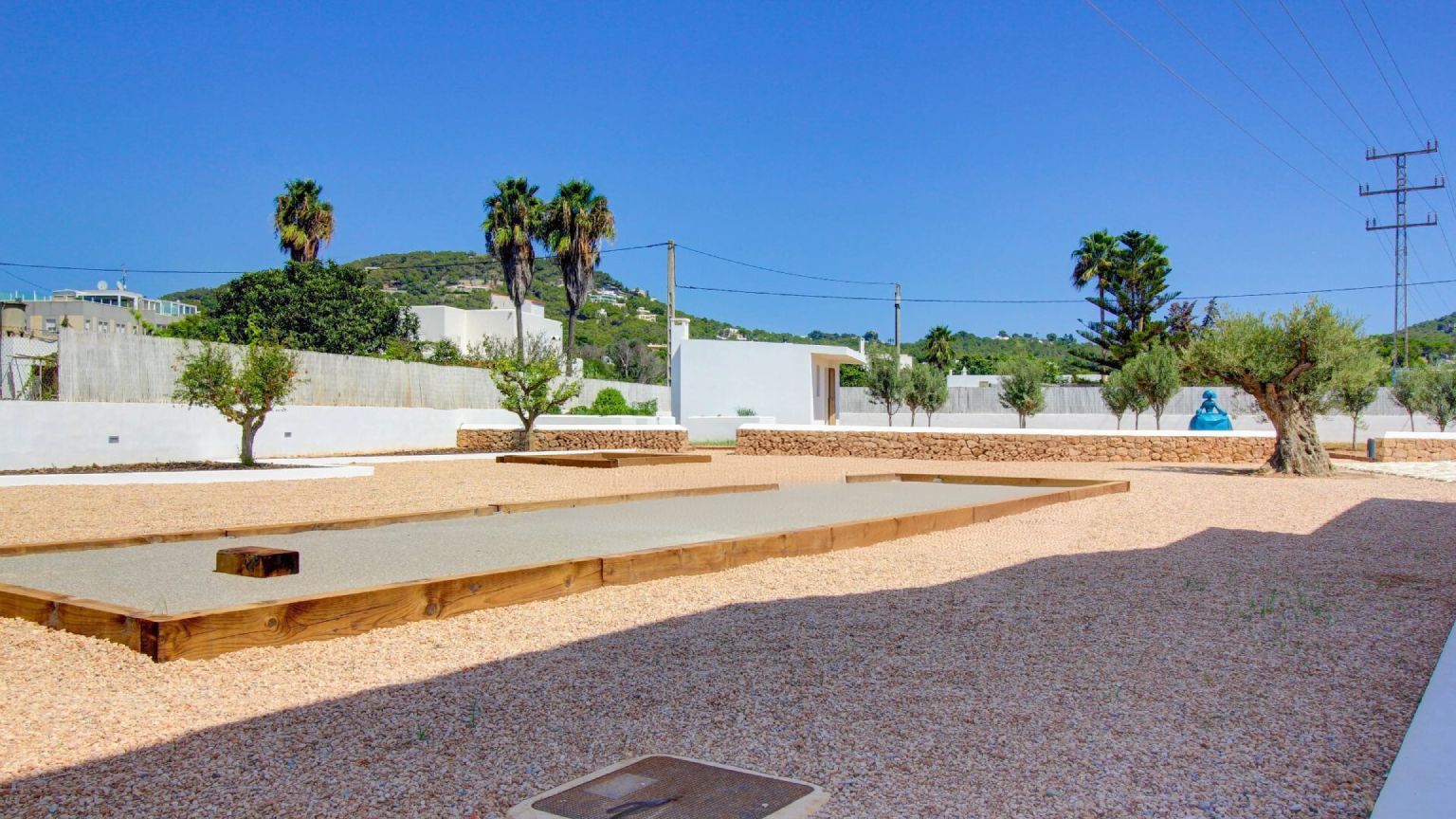Uno de los elementos clave del proyecto fue la incorporación de una pista de petanca, perfectamente integrada en el terreno. Este espacio no solo aporta una opción recreativa, sino que también añade un toque tradicional, invitando a disfrutar de momentos de relajación al aire libre.