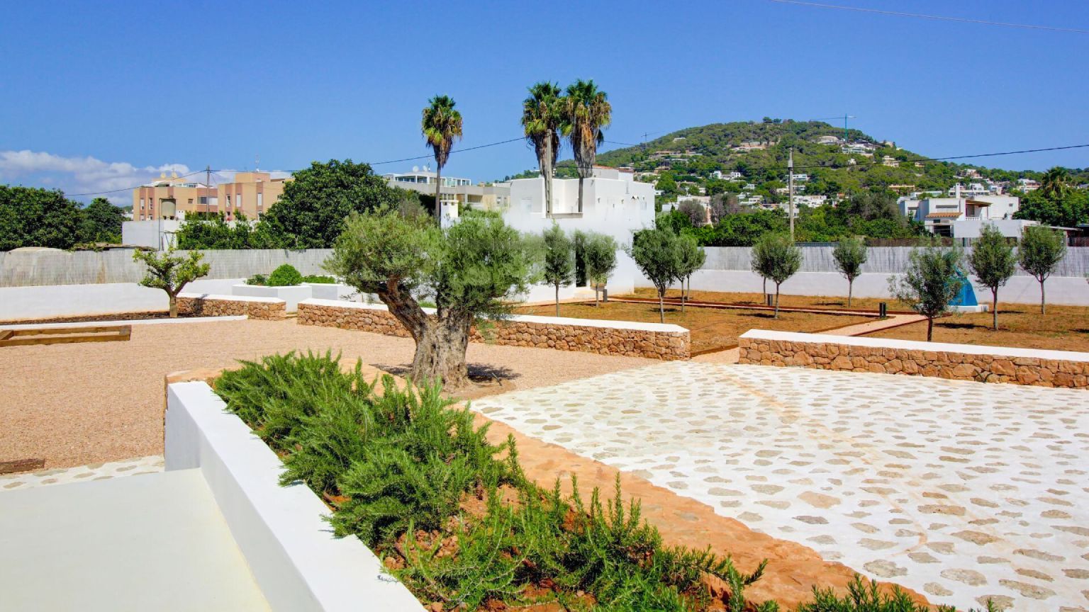 El jardín está diseñado con una estructura simple pero efectiva, donde cada planta y detalle responde a la necesidad de crear un entorno duradero y resistente, sin sacrificar la belleza del diseño mediterráneo.